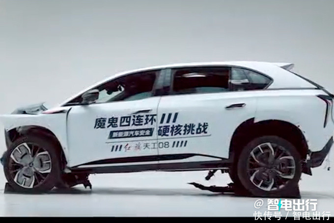 靠近正面相对100km/h的撞击速率,红旗天工08的A柱无可视变形,侧面碰撞以及背面碰撞等多种情况下,减少车身侵入量。