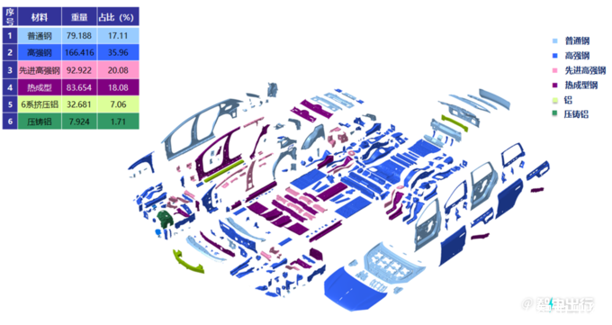 高强钢以上占比74%,超高强热成形硼钢用量达到18%;