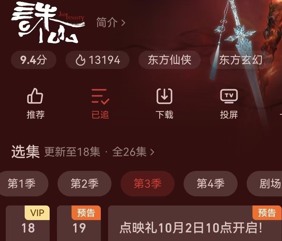 具体是这么的,诛仙第三季第19集才更新莫得多久,好多不雅众就发现,在平台里诛仙第三季动漫的界面里,顷刻间多出一个预报,上头还平直写着,点映礼10月2日10点开启。这一来,坐窝激励好多东谈主揣度。