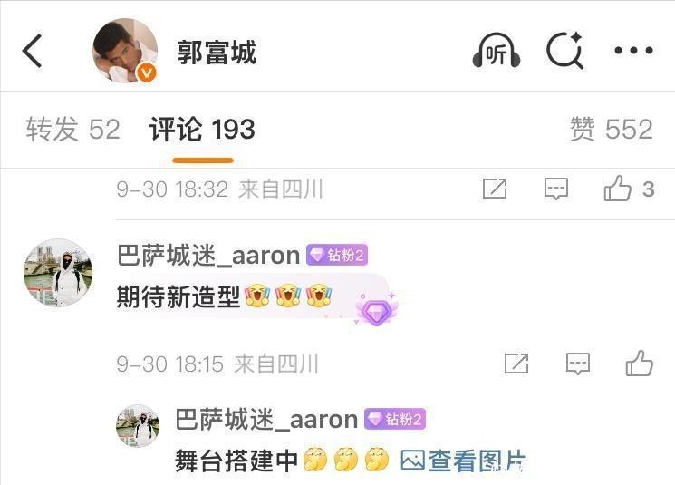 郭富城在9月30日傍晚那条微博下,有疑似职责主说念主员留言“舞台搭建中”,还配了一张施工现场的像片