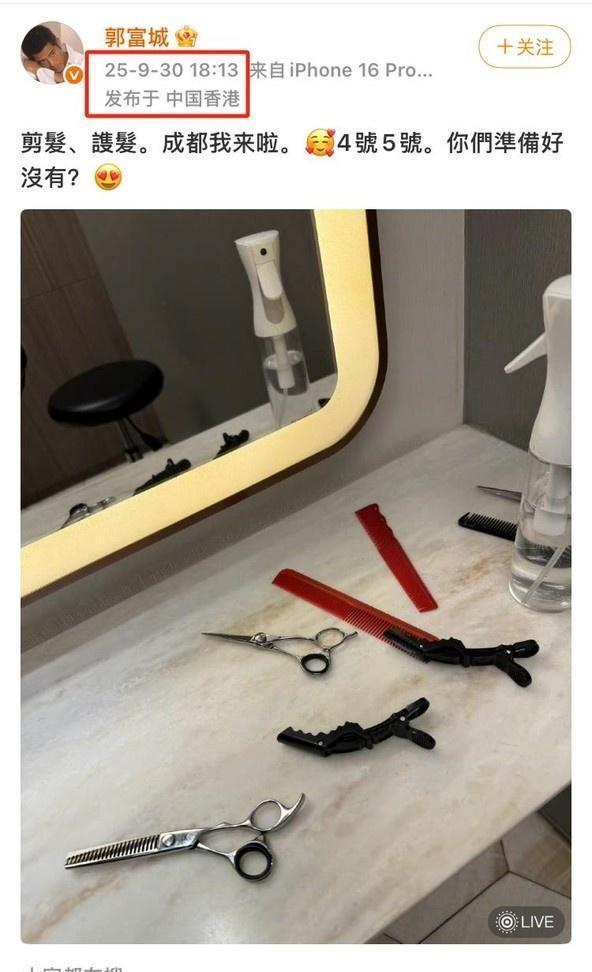 并吞技巧,他在微博晒出剃头护发的理发器具,IP定位在中国香港,提的是成都演唱会备战,口吻迟滞,莫得半个字提到生娃