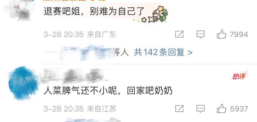 陈德容讲述后,就有网友平直留言让她退赛,吐槽她“东说念主菜”秉性还不小,回家当奶奶吧……