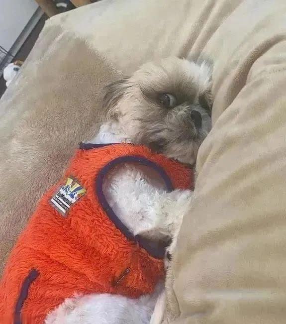 网友家得狗狗Ant亦然这么,依然8岁得它,就算是休眠也对铲屎官得行为了如指掌!